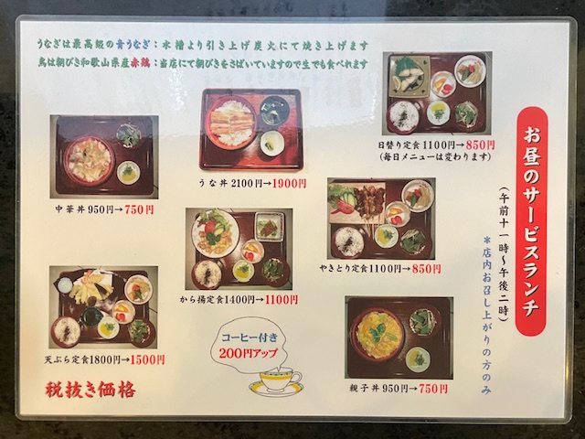 鰻料理・鳥料理ならここじゃ!親子丼、中華丼、天丼、サービスランチ、日替わり定食など、定食屋の定番もあるぞ!
