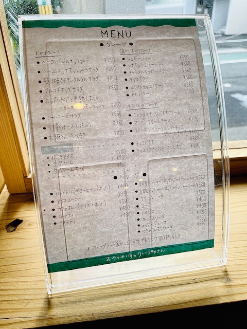 営業日については、「不定期営業(卸がメイン事業のため、営業は余力がある日のみ。たまたま通りかかってたまたま開いていてたまたまクレープが食べたくなったら是非ご来店ください。)」とのことで、わしも空振りが続いたが、ついに入店が叶った。