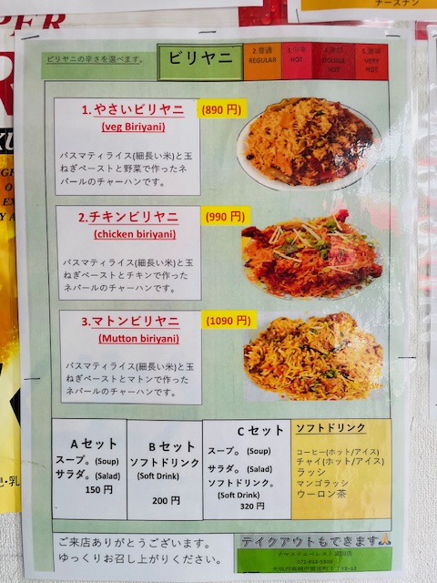 その奥にはナマステエベレスト摂津富田店さんじゃ。わしは、一時期はまっていたチーズナンという悪魔の罠・カロリー爆弾から逃れるため(チーズナンに蜂蜜をかけると、それはもう・・・)、インド料理・ネパール料理の店は見て見ぬふりをしていたのじゃが・・・大阪・関西万博で食べたビリヤニを食べることにした。