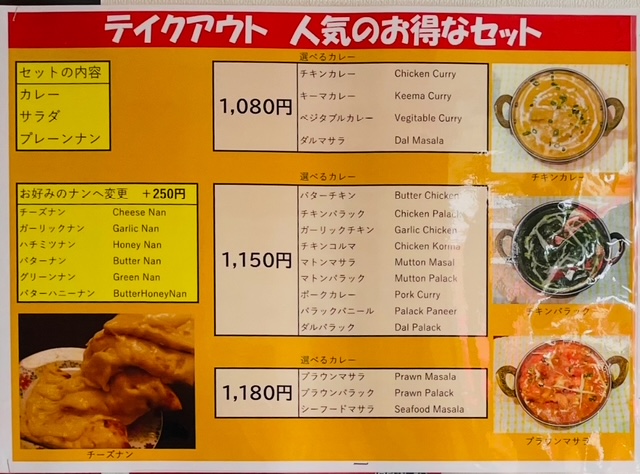 もちろん、カレーやナンも売っておるし、テイクアウトもできるぞ。