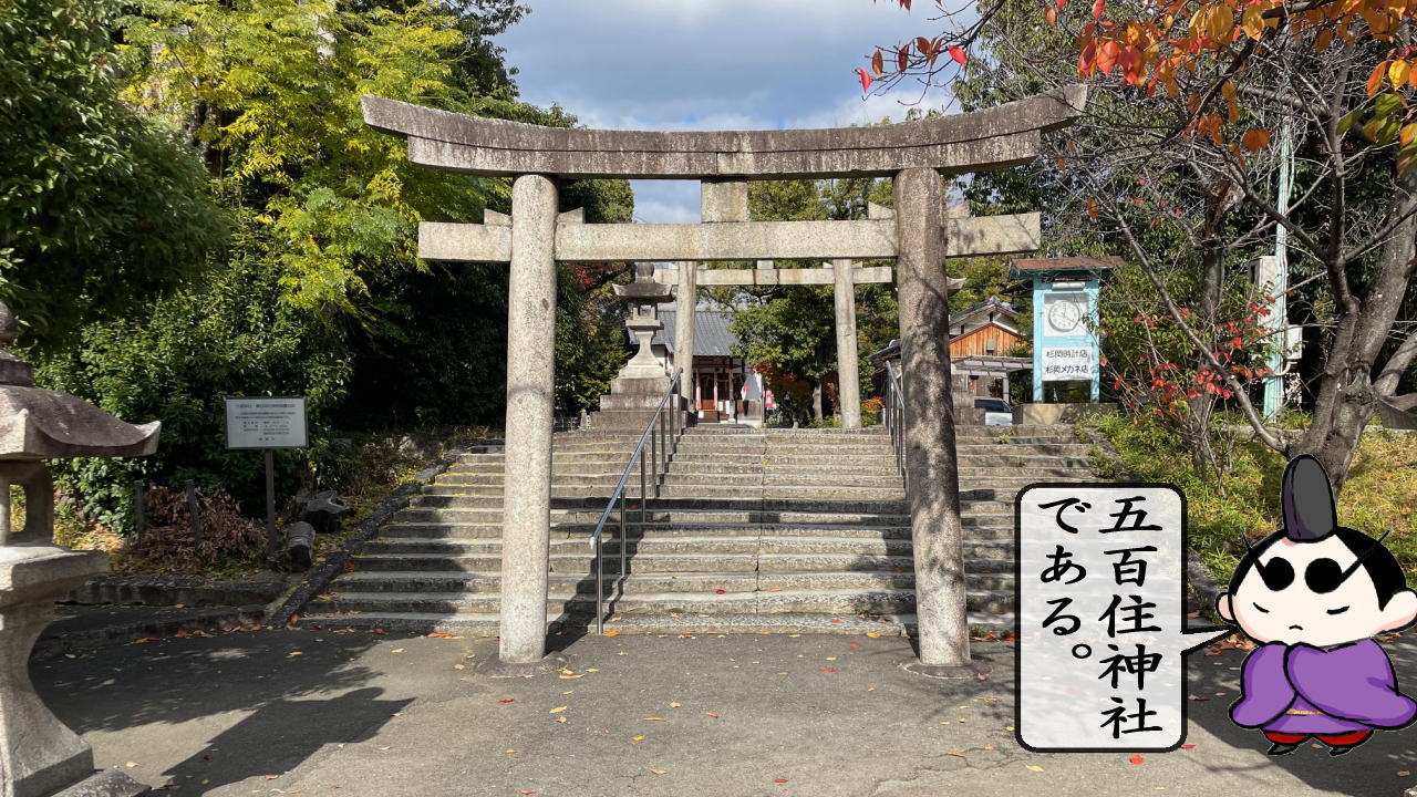 なお、「五百住」という地名の由来は、安閑天皇元年(534年)に、天皇のため、田を耕すべく遣わされた500人が、ここに居住したことじゃ。そのことは、日本書紀に記述されておるぞ。
